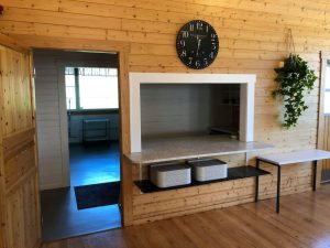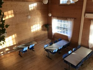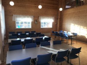 Keittiö, ruokailukalusto noin 60 henkilölle ja kahvikalusto noin 100 henkilölle.
